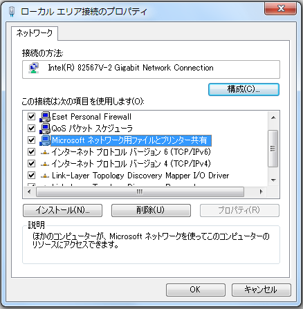 「Microsoft ネットワーク用ファイルとプリンター共有」がない場合は、
