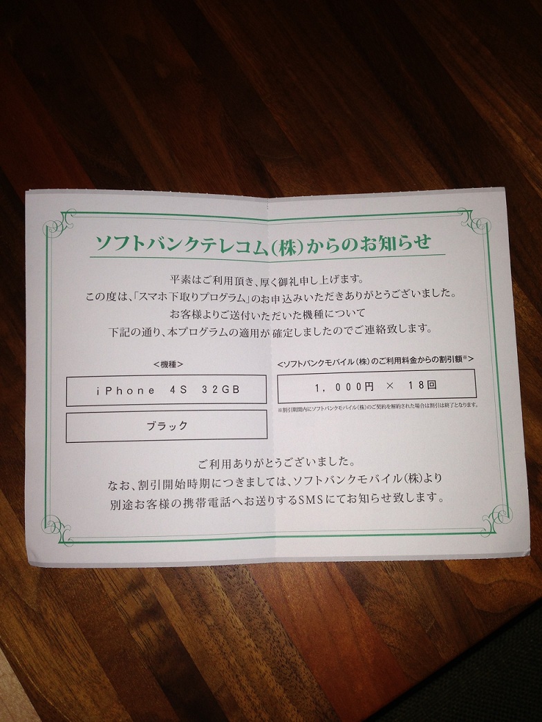 下取り金額がSoftbankが提示した金額を上回るというなんとも悲しい話がありまして、